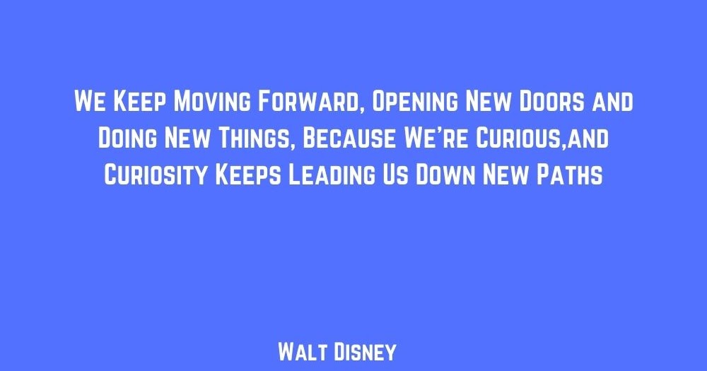 We keep moving forward walt disney quote. Around here however we dont look backwards for very long. The film ends with a great quote from walt disney himself. Quote by walt disney. We keep moving forward opening new doors and doing new things because were curious and curiosity keeps leading us down new paths.